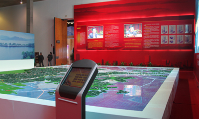數(shù)字互動沙盤是一種基于可計算信息的沉浸式交互環(huán)境的三維虛擬仿真技術(shù)的沙盤模型,通過觸摸屏、燈光、影像技術(shù)與實體沙盤結(jié)合,生動展示主題內(nèi)容,并可設(shè)置互動控制點(diǎn)與由觀眾自主選擇展示區(qū)域內(nèi)容,或由程序控制自行播放。