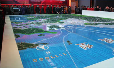 數(shù)字沙盤是一項革命性的創(chuàng)新,在傳統(tǒng)固態(tài)沙盤的基礎(chǔ)上,加入了以動態(tài)投影為主的各種多媒體聲光手段,打破了人們對沙盤單調(diào)刻板的印象。在城市規(guī)劃館中,最不可缺少的就是沙盤。沙盤是一個城市的微縮,向觀眾提供一個鳥瞰的角度觀察城市,通覽全局。但傳統(tǒng)的沙盤模型只能在一個時間維度上表現(xiàn)城市,對于一個長達(dá)幾年甚至幾十年的城市規(guī)劃來說,表現(xiàn)力遠(yuǎn)遠(yuǎn)不足。數(shù)字沙盤可動態(tài)地展現(xiàn)一個城市的全貌,在不同的時間維度上跳躍變化,是闡述一個城市規(guī)劃的最佳工具。