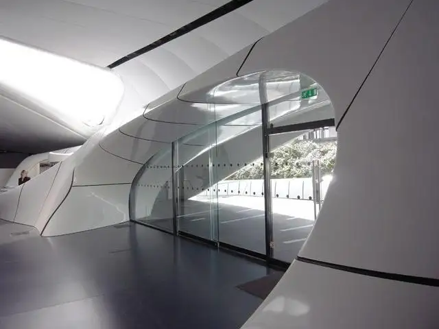 (圖1-7)Zaha Hadid設(shè)計的香奈兒移動藝術(shù)館由香奈兒捐贈。將幫助推廣多元文化的交流活動,建筑結(jié)構(gòu)的形態(tài)既包含概念上的隨意性,同時具備功能上的考慮。流動的幾何形體和有機的線條組成了一個流動且充滿張力的空間。這里充滿了光線與黑暗的對立,內(nèi)部與外部的對立,自然與人工的對立。起伏的表皮與流動的體積匯集一點,不斷重新定義著每個展示空間的品質(zhì)與感受,同時引導(dǎo)著參觀者的行為與路線。