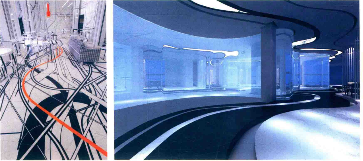 圖5-6空間中的錯(cuò)視手法 圖5-7空間中水的波紋象征手法