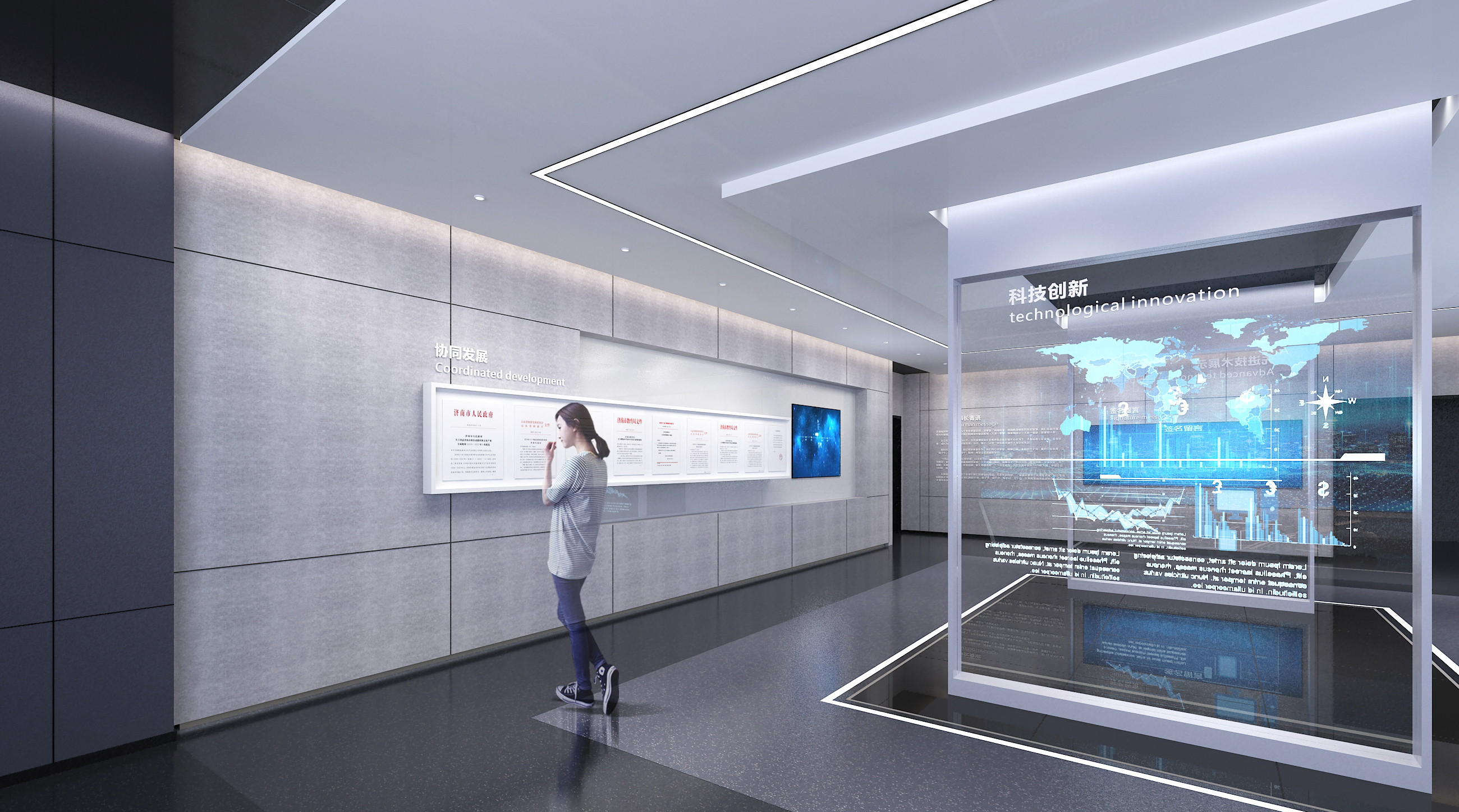 (2)公司展廳設(shè)計功能區(qū)域的燈光處理
